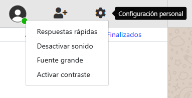 En el sector izquierdo podrá observar una serie de íconos. Uno de ellos, con forma de engranaje, es la configuración personal. Haciendo click en el mismo se depliegan una lista de opciones. La primera de ellas es respuestas rápidas: