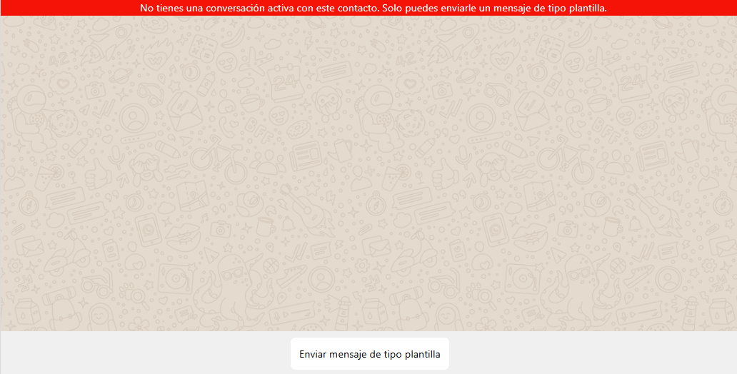 Al hacer click en un contacto sin una conversación activa podrás observar la siguiente pantalla