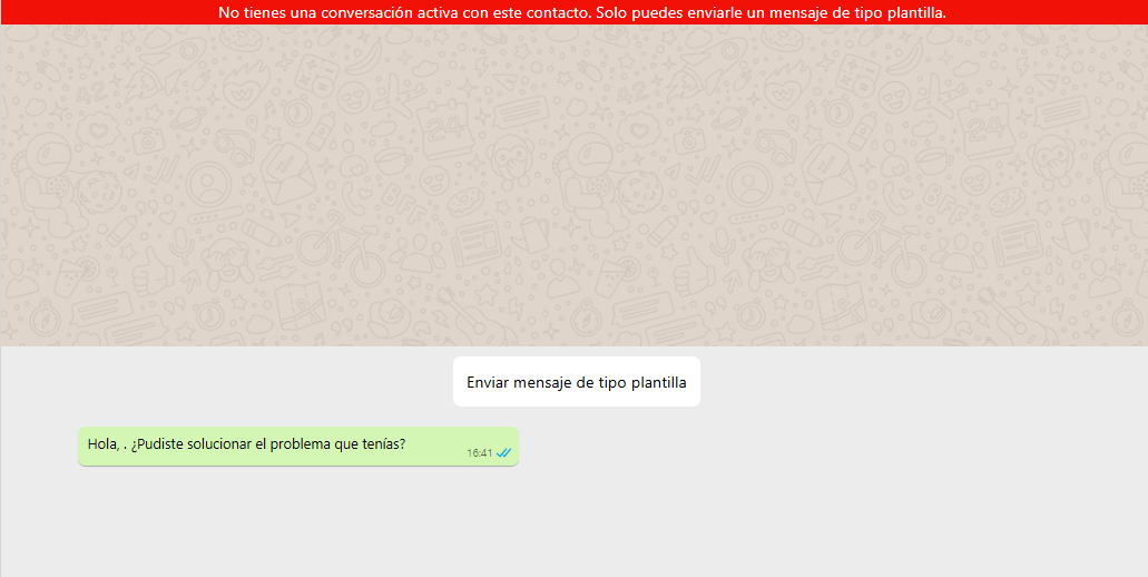 Al hacer click en el mensaje plantilla deseado, se enviará el mensaje al contacto. Luego deberá esperar la respuesta del contacto.
