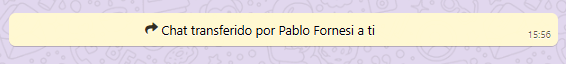 El agente al cual se le transfirió el chat va a recibir el mismo con una nota de aviso en el mismo:
