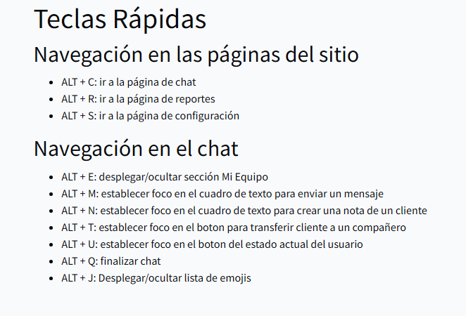 Está acción redirige a la pantalla donde se muestran las combinaciones de teclas y sus actividad correspondiente.